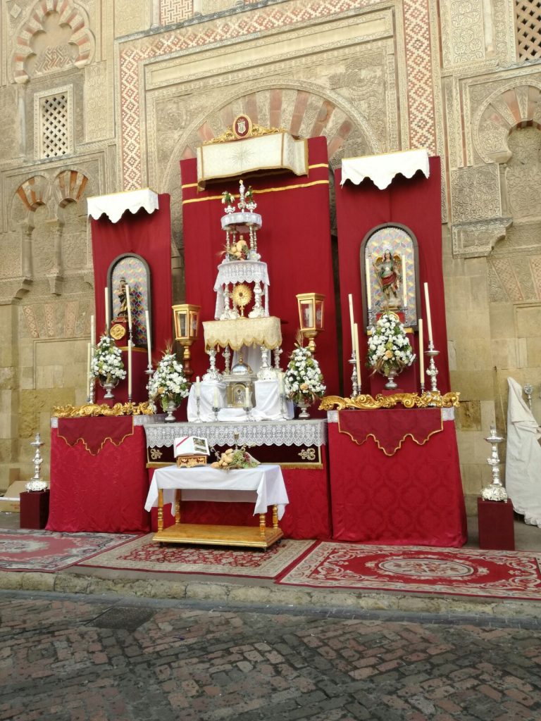 El domingo 18 de junio, la Iglesia Católica celebró la solemnidad del Corpus Christi, y por ello, nuestra Hermandad estuvo presente en la Santa Misa celebrada en la Santa Iglesia Catedral por el Excmo. y Rvdmo. Mons. don Demetrio Fernández González, Obispo de Córdoba, y concelebrada por el Cabildo Catedralicio y el Clero de la ciudad. Luego asistimos en el cortejo de la procesión de Su Divina Majestad por las calles de nuestra ciudad.