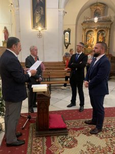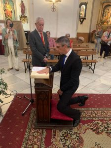 A la finalización de la misma se ha procedido al Juramento de Cargo de los nuevos cargos de la Junta de Gobierno, D. Francisco Miguel Muñoz Serrano como Delegado de Protocolo y D. Manuel Pérez de la Rosa como Mayordomo y adjunto al Diputado Mayor de Gobierno.
