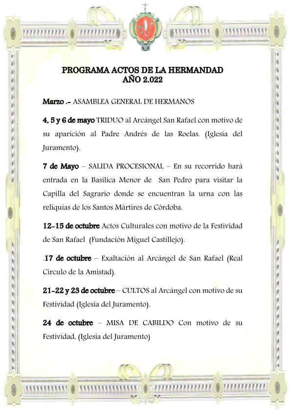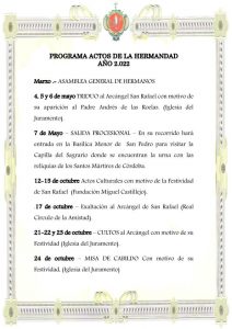PROGRAMACIÓN ACTOS DE LA HERMANDAD AÑO 2022