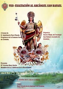 El próximo día 21 de Octubre a las 21:15 horas, la Ilustre Hermandad del Arcángel San Rafael, va a celebrar en el Real Círculo de la Amistad de Córdoba, la VIII Exaltación al Arcángel San Rafael, acto que correrá a cargo de D. Josemaría Varo Pineda, cofrade y Pregonero de la Semana Santa cordobesa, que será presentado por Dª. Cristina Ranz Garigo, miembro de la Junta de Gobierno de la Hermandad.